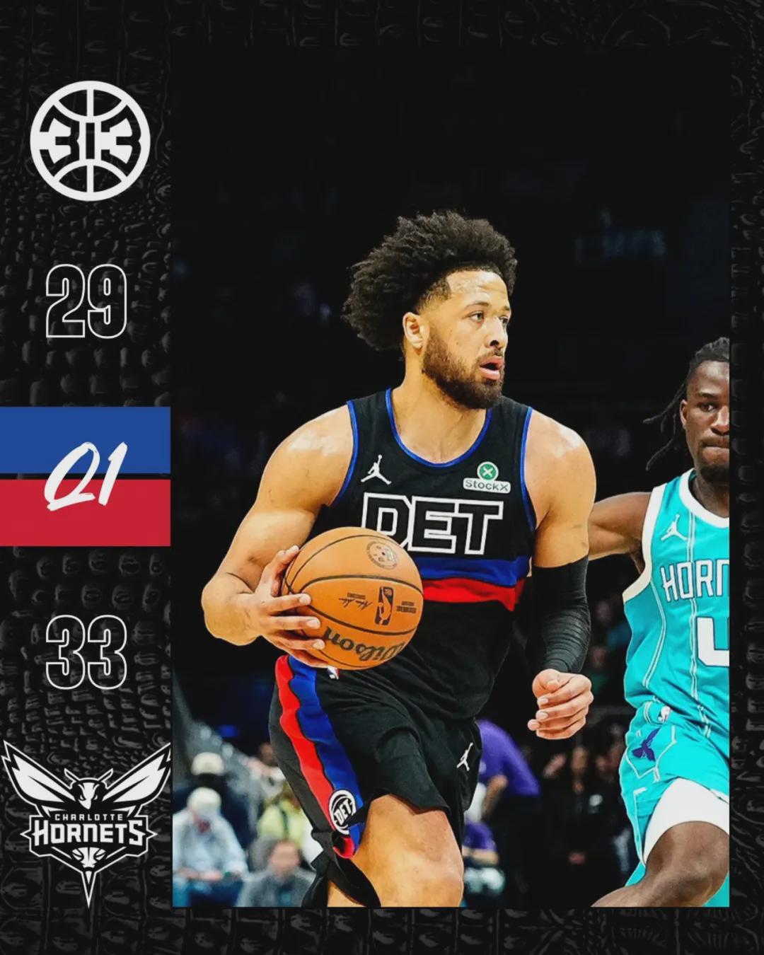 第一节打完,黄蜂33-29领先活塞4分。坎宁安开局手感不佳,首节7中1仅得4分3篮板3助攻。黄蜂这边,克尼佩尔和布兰登-米勒单节合砍18分,他俩现在就是黄蜂的基本盘。第二节坎宁安突然爆发,单节7投6中砍下15分3助攻。