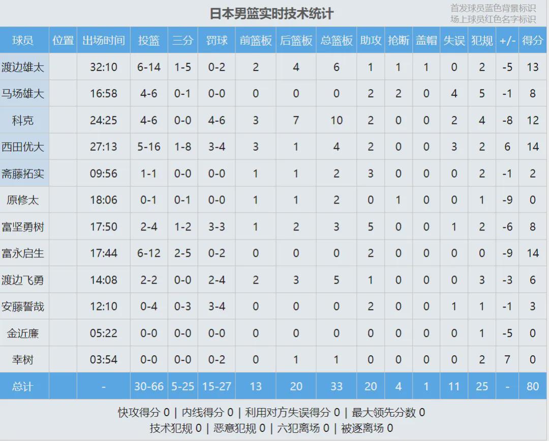 半场战报:赵睿8分2板2助,中国男篮33-47落后日本