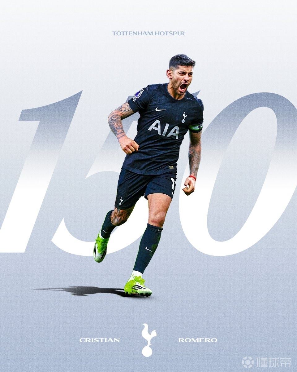 此役欧冠客场对阵法兰克福,罗梅罗首发出战,迎来热刺生涯各项赛事第150次出场。