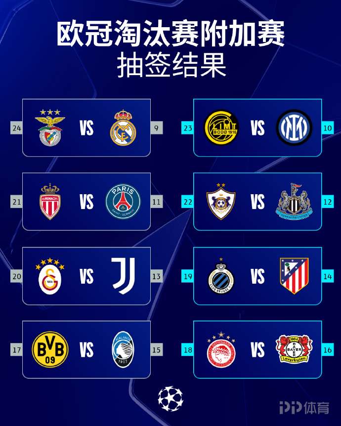 2025-26赛季欧冠淘汰赛附加赛抽签仪式在北京时间今晚进行,淘汰赛附加赛对阵结果已全部出炉!