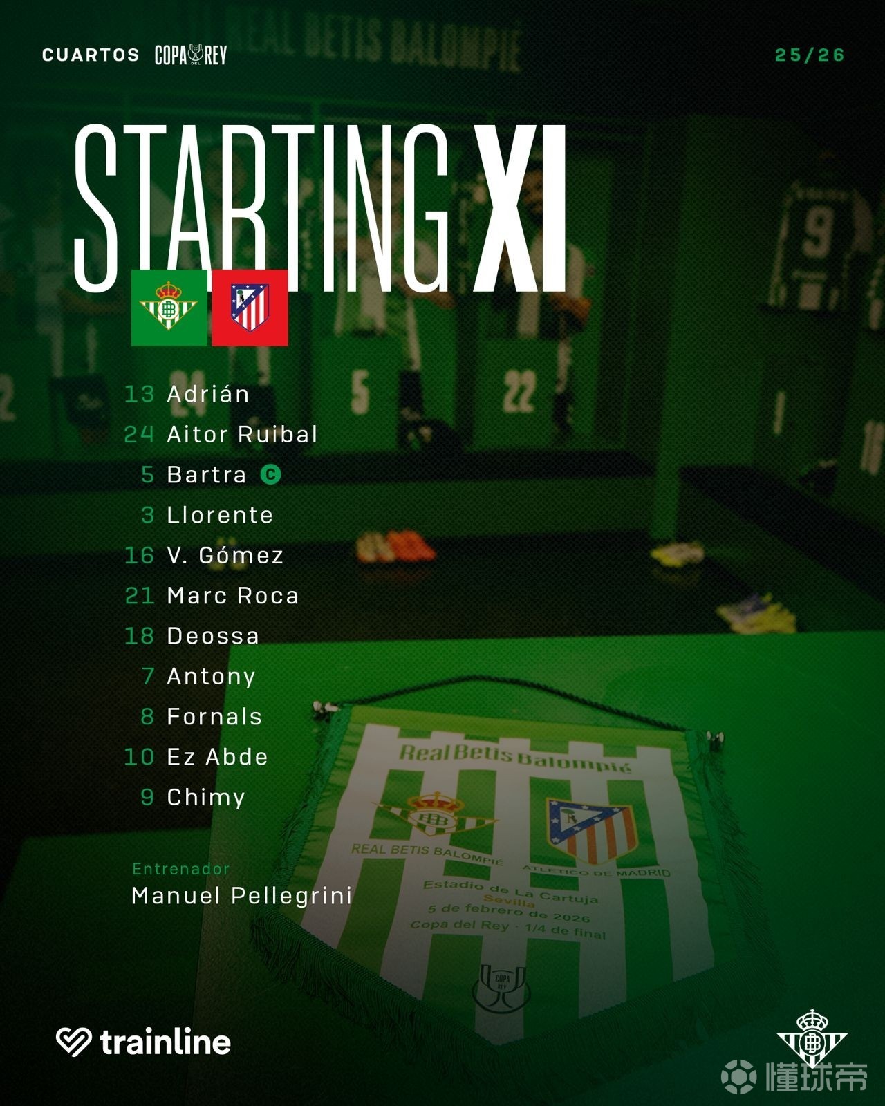 马竞客战贝蒂斯:格列兹曼、小西蒙尼首发出战,卢克曼首秀