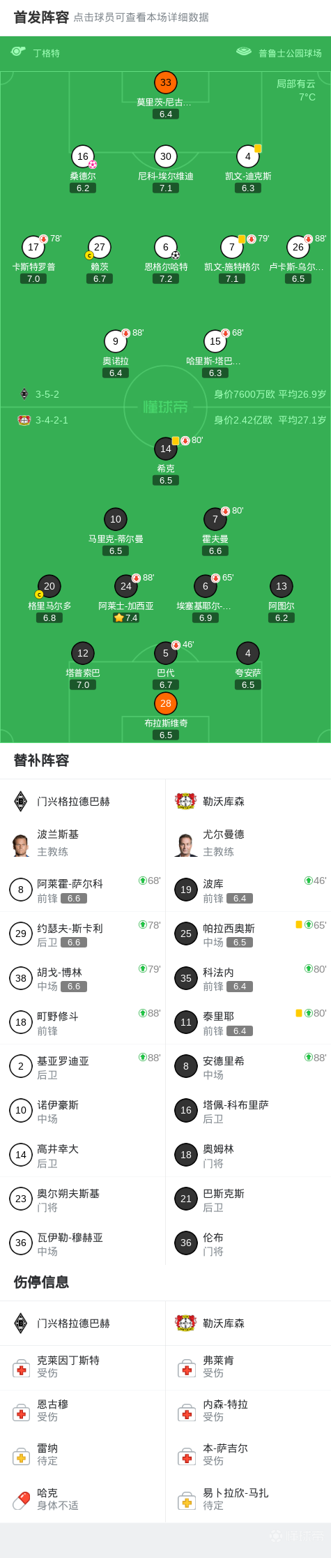 门兴1-1勒沃库森,恩格尔哈特破门,桑德尔乌龙