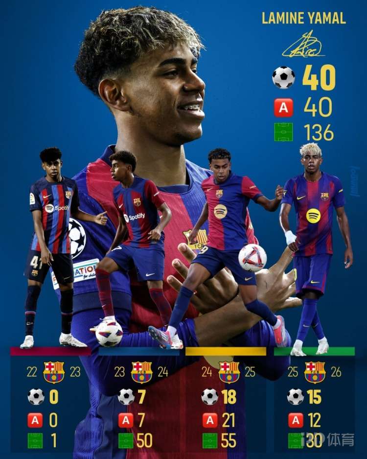 40球40助!18岁亚马尔为巴萨出战136场比赛参与80球