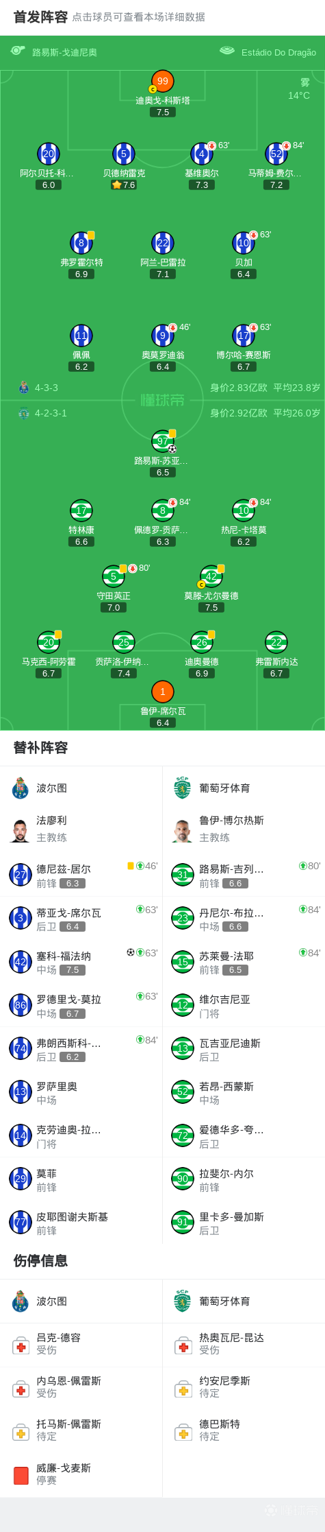 波尔图1-1葡体,塞科-福法纳破门,路易斯-苏亚雷斯点射绝平