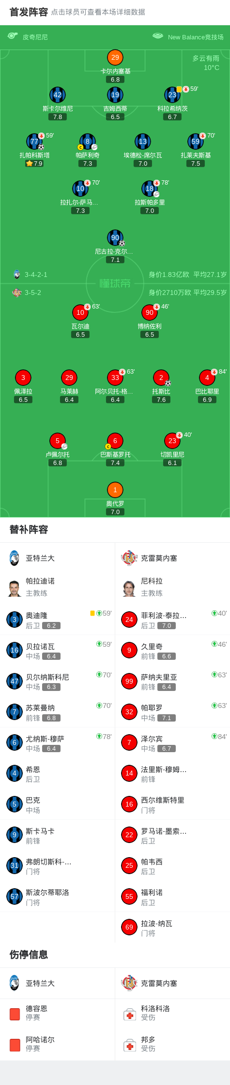 亚特兰大2-1克雷莫内塞,扎帕科斯塔、尼古拉-克尔斯托维奇破门
