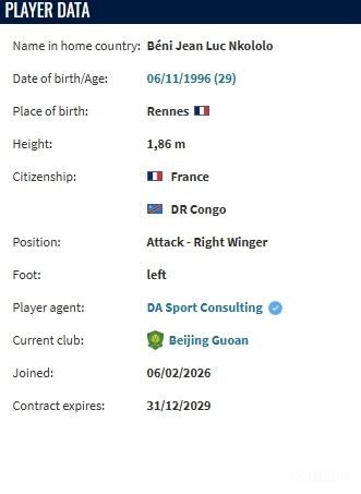 官方:29岁法国边锋恩科洛洛加盟北京国安;曾与主帅蒙哥马利共事两年