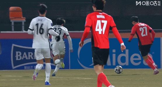第13分钟,江原右路反击,朴相赫横传禁区被挡,徐珉优12码位置得球爆射高出。