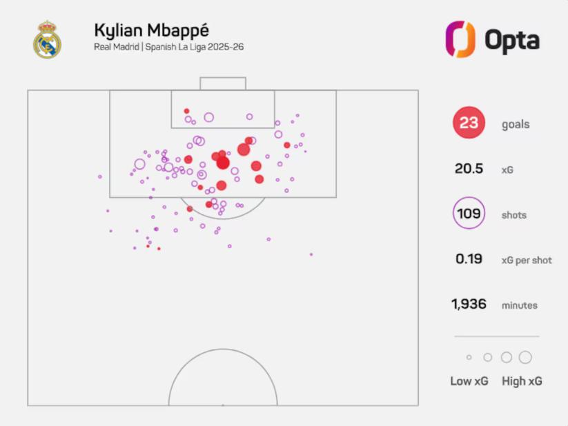 姆巴佩(27岁)的极限,恐怕只有他自己知道。他的数据一次次刷新认知、打破预言,甚至开始凭借数字超越皇马历史上那些早已功成名就的传奇人物。