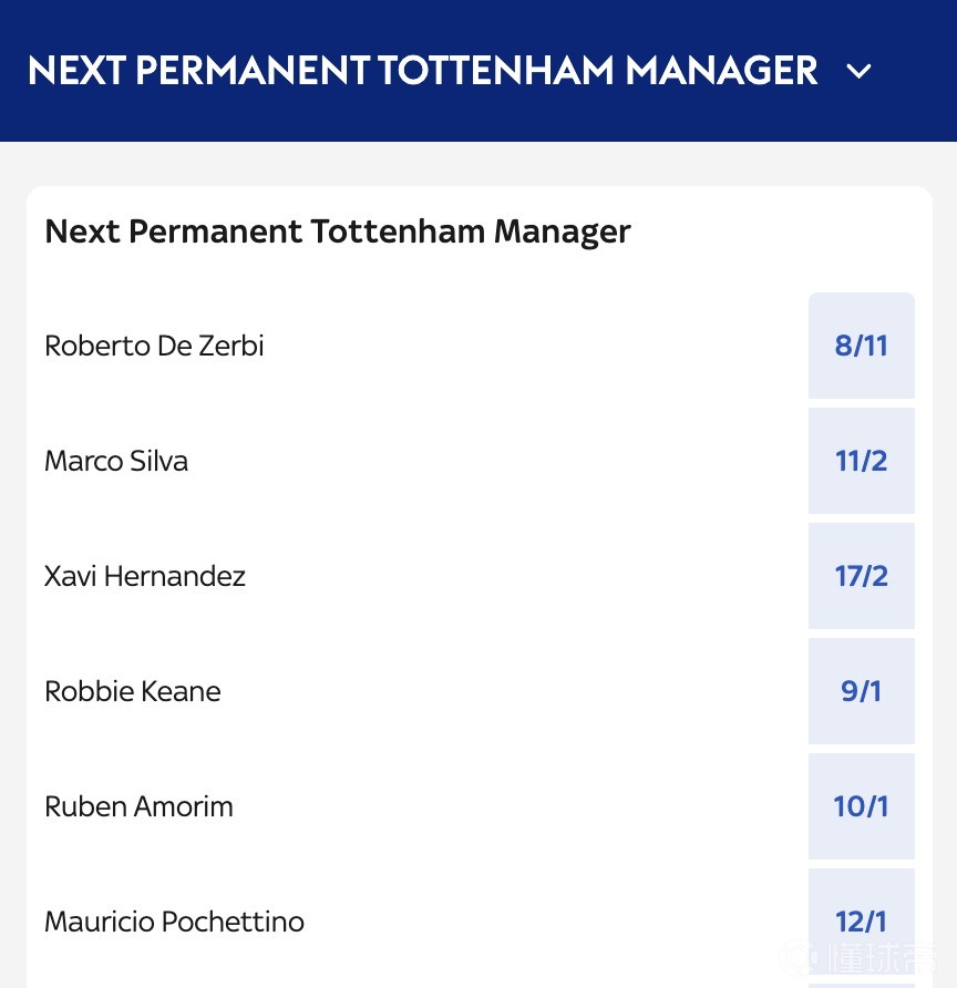热刺新帅赔率:德泽尔比居首,哈维、阿莫林、波切蒂诺上榜