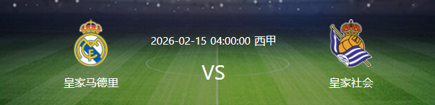 北京时间2月15日凌晨04:00,即今天深夜,西甲联赛第24轮将上演一场引人关注的焦点之战,西甲豪门皇家马德里坐镇主场迎战实力不俗的皇家社会队。