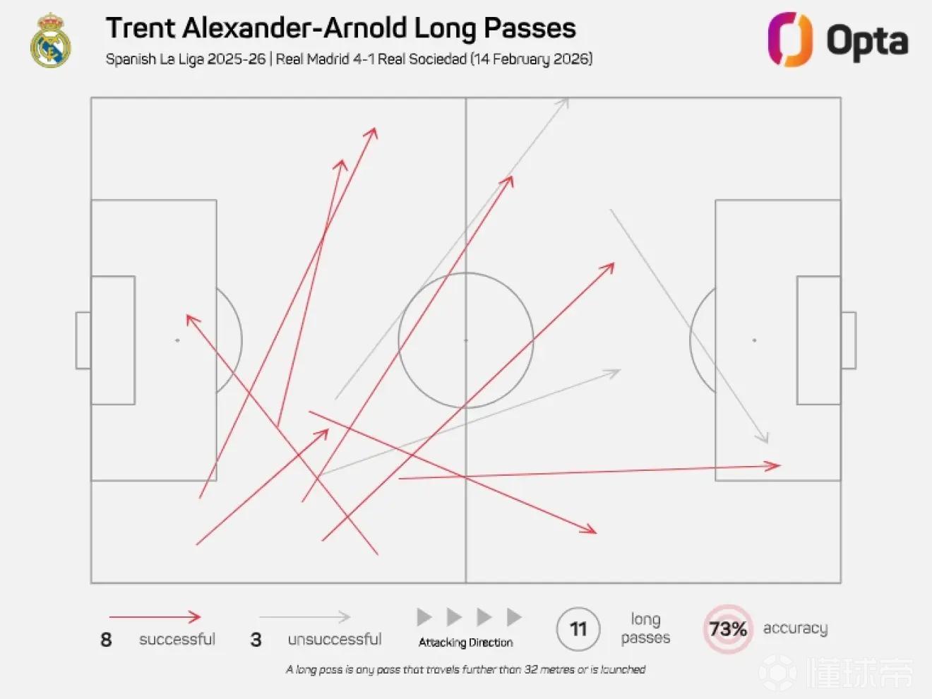 (阿诺德对阵皇社的长传分布图)