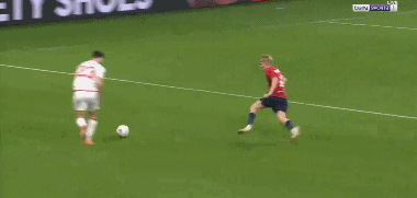 第27分钟,佩林小角度打门,皮球偏出远门柱