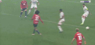 第45+1分钟,红星角球机会,特博抢点破门,里尔0-1红星